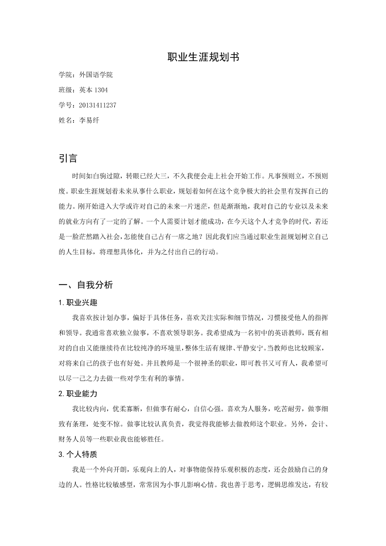 4、大 学 生 职 业 生 涯 规 划 书 教 师 职 业